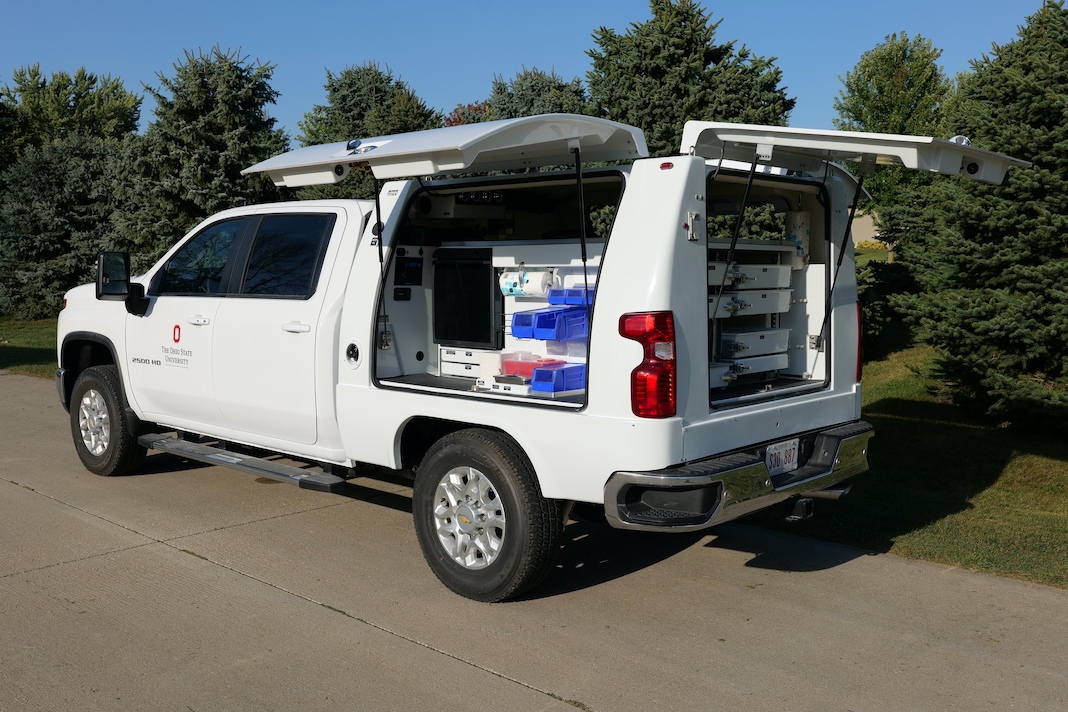 • Accommodates EPS foam or veterinary chiropractic bales, X-ray and ultrasound equipment, carts, gallon jugs and more!