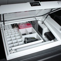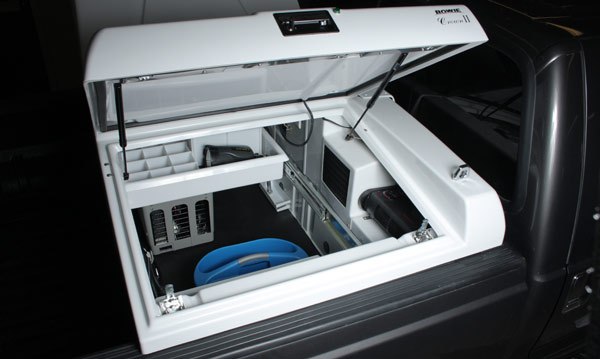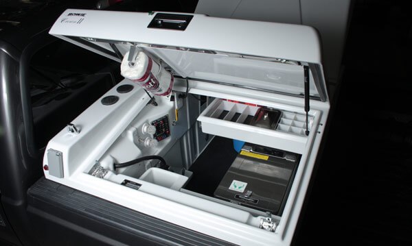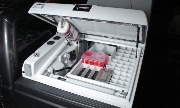 4′ Veterinary clinic designed to fit both 6′ and 8′ truck beds.
