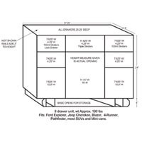 - Top: 7.625″ x 25″ x 4.25″ drawer with lock and 100 cc dividers